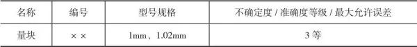 1.温度:(20±1)℃,每小时温度变化不超过0.5℃。核查前,被核查对象和核查标准在上述环境中放置时间分别不少于12h和2h。根据位移传感器示值范围,尽量选择接近最大示值范围的点作为核查点。如位移传感器示值范围为±20μm,则选择的核查标准为1mm和1.02mm的量块对子,核查范围为20μm的这个点。1.量块比较仪经校准后,立即用核查标准对其进行核查。将量块比较仪放置在稳固的支座或平台上,放置时间不少于12h。将量块对放置在量块比较仪的工作台上,时间不少于2h。2.核查前,检查工作台和传感器球面测头等,应没有影响校准工作的划痕、磨损等缺陷。接通电源,预热时间应不少于0.5h。3.将量块比较仪传感器球面测头与A量块接触,对准量块的中心位置,加载应力,显示50%左右,锁紧臂架,拨动拨叉数次,待数值稳定后置零。取出A量块,放入B量块,拨动拨叉数次,待数值稳定后读取中心长度差值,重复测量3次,计算得到平均中心长度差值x̄0作为核查标准的参考值。4.经过一段时间后或对量块比较仪的计量性能产生怀疑时,用同样的方法再次进行核查,得到平均中心长度差值x̄1。若|δ|≤0.03μm,则核查结果符合要求,否则不符合要求。(1)若核查结果符合要求,可继续使用;若|δ|=0.03μm,应加大核查频次或采取其他有效措施以规避风险。(2)若核查结果不符合要求,应立即停止使用;必要时进行重新溯源,对设备的计量性能做进一步的验证;若影响到已出具的报告结果,应采取相应补救措施。以量块比较仪位移传感器示值范围为±20μm为例,核查记录如表3所示。
