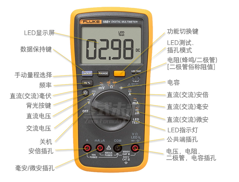 万用表的三个基本功能是测量电阻、电压、电流,所以老前辈们叫它三用表。现在的万用表添加了好多新功能,尤其是数字式万用表,如测量电容值,三极管放大倍数,二极管压降等,更有一种会说话的数字万用表,能把测量结果用语言播报出来。