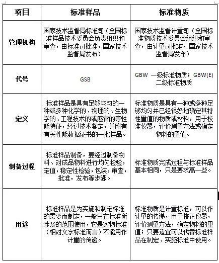 标准样品和标准物质的异同主要见下表: