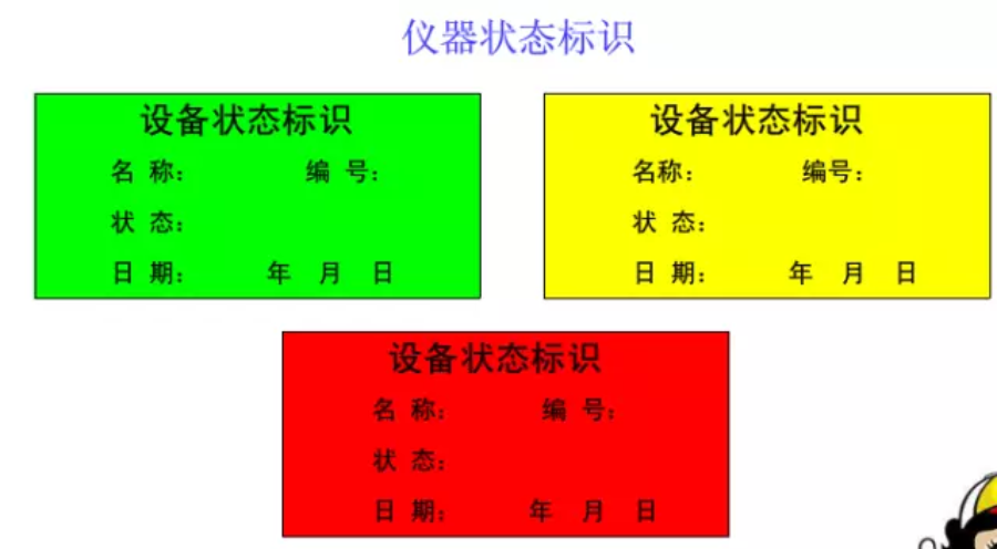 ①绿色标识,表明仪器设备具有正式计量检定合格证书和校准合格报告,处于正常使用状态。